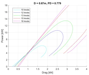When not in use, the propeller is freewheeling to reduce the drag. Since there is no propulsion requirement, the shape and pitch of the propeller is very different compared to a normal propeller. This leads to a much lower drag during freewheeling and therefore it is not necessary to create additional complexity by folding of feathering the propeller. The freewheeling drag at 10 knots is between 0.22 and 0.25 kN, for which the speed loss is not noticeable on a typical yacht.